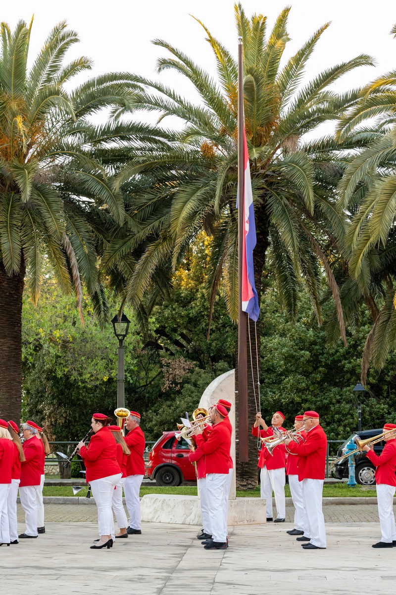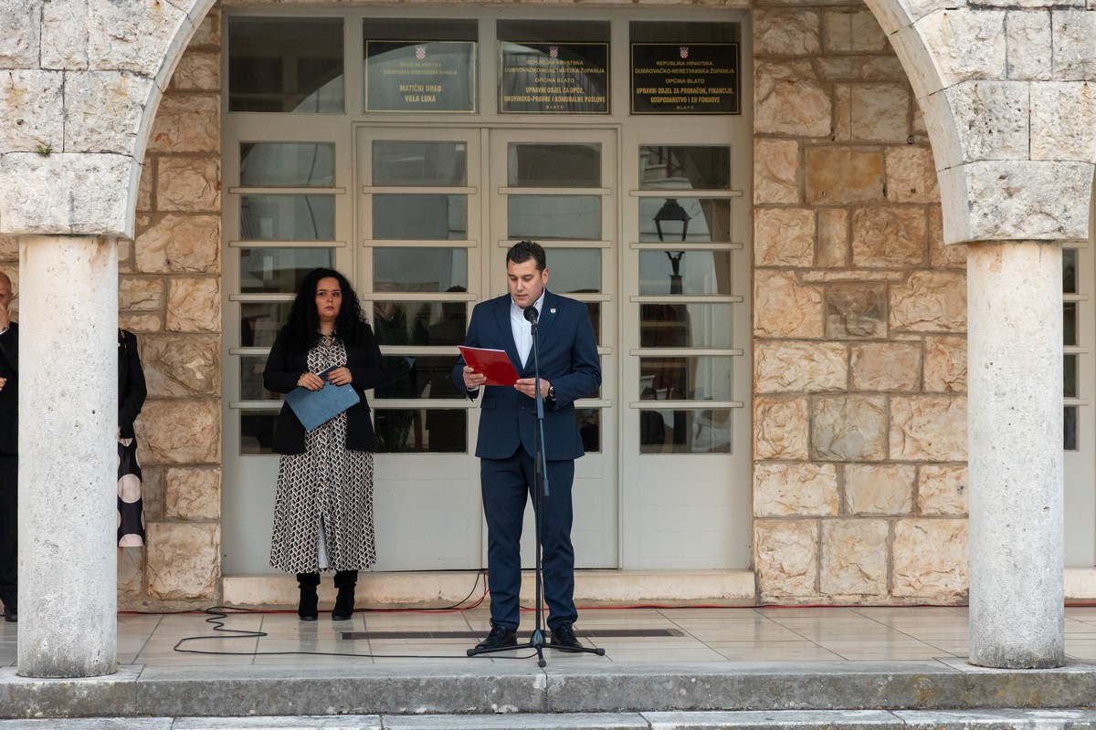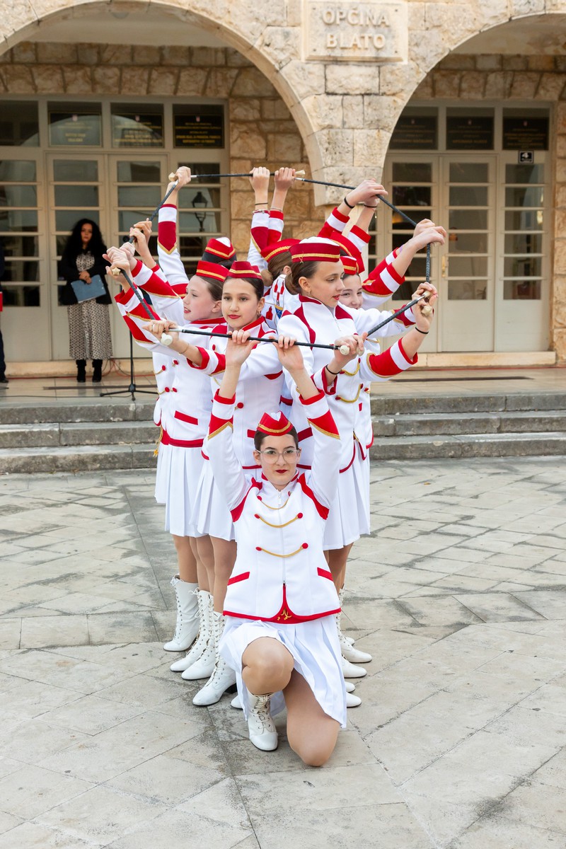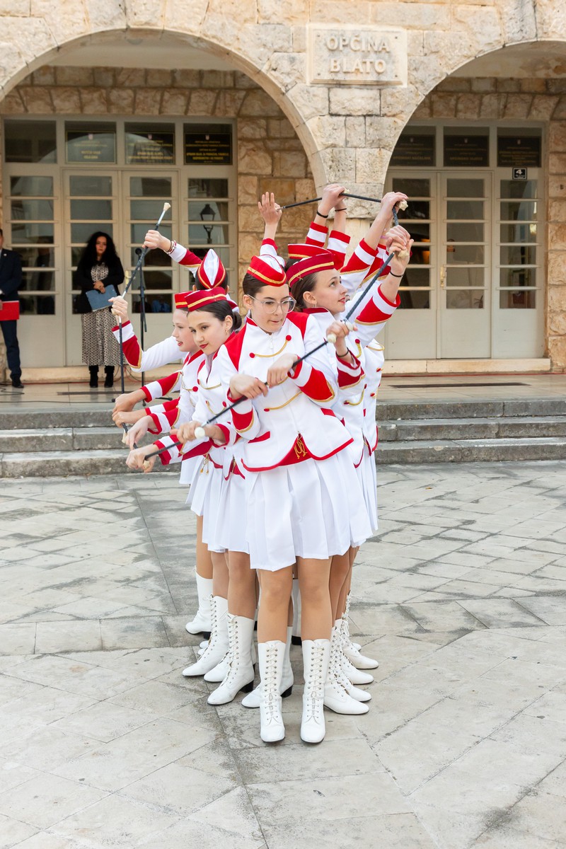 Na samom početku HGU Sveta Vincenca je odsvirala hrvatsku himnu "Lijepa naša Domovina" dok j eovogodišnji dobitnik općinskog priznanja Zlatni grb – pojedinačno priznanje Zlatni grb Danko Mirošević podignuo zastavu na jarbol. U nastavku programa uslijedio je nastup najstarije grupe Udruge blatskih mažoretkinja koje su se predstavile sa tradicionalnim mažoret plesom.